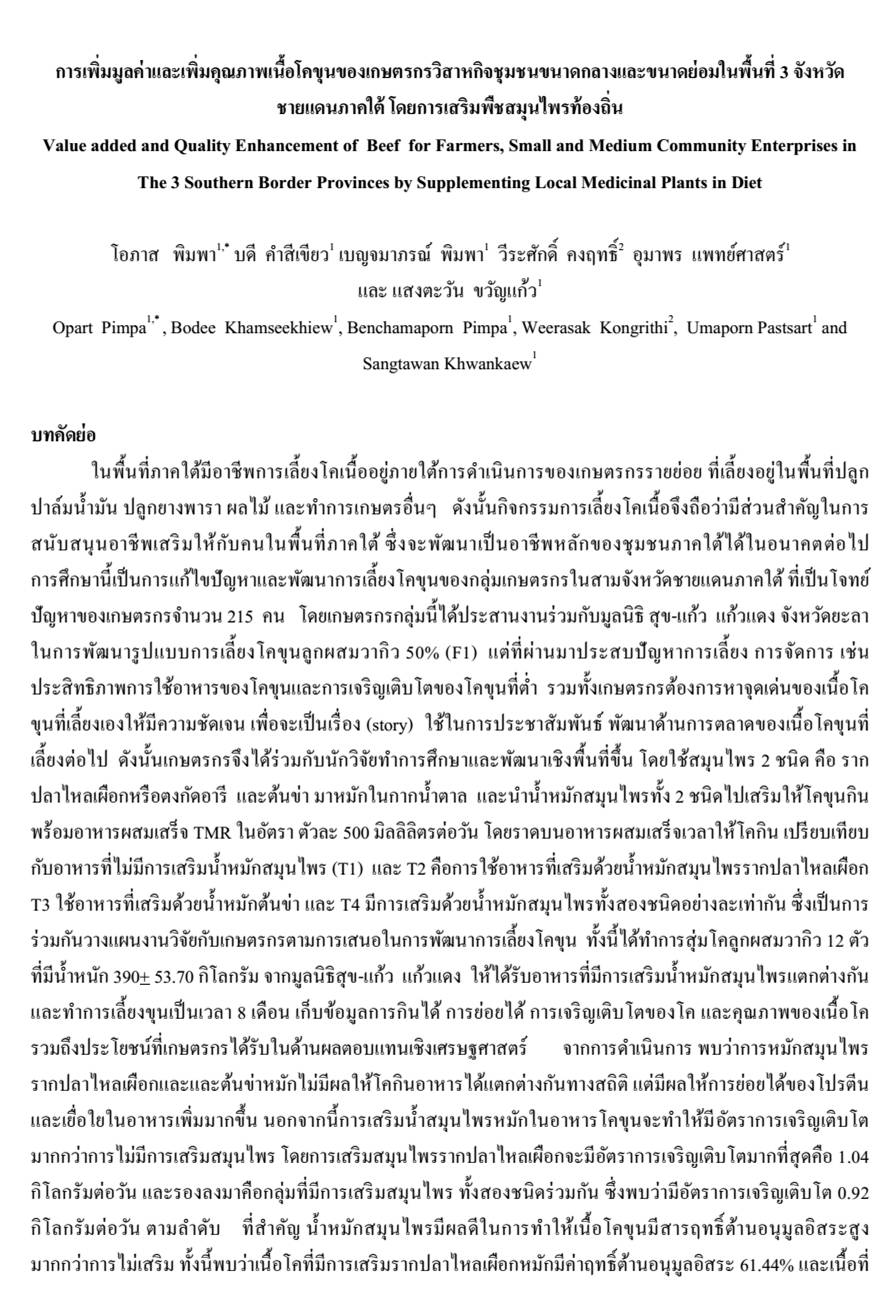 การเพิ่มมูลค่าและเพิ่มคุณภาพเนื้อโคขุนของเกษตรกรวิสาหกิจชุมชนขนาดกลางและขนาดย่อมในพื้นที่ 3 จังหวัดชายแดนภาคใต้ โดยการเสริมพืชสมุนไพรท้องถิ่น