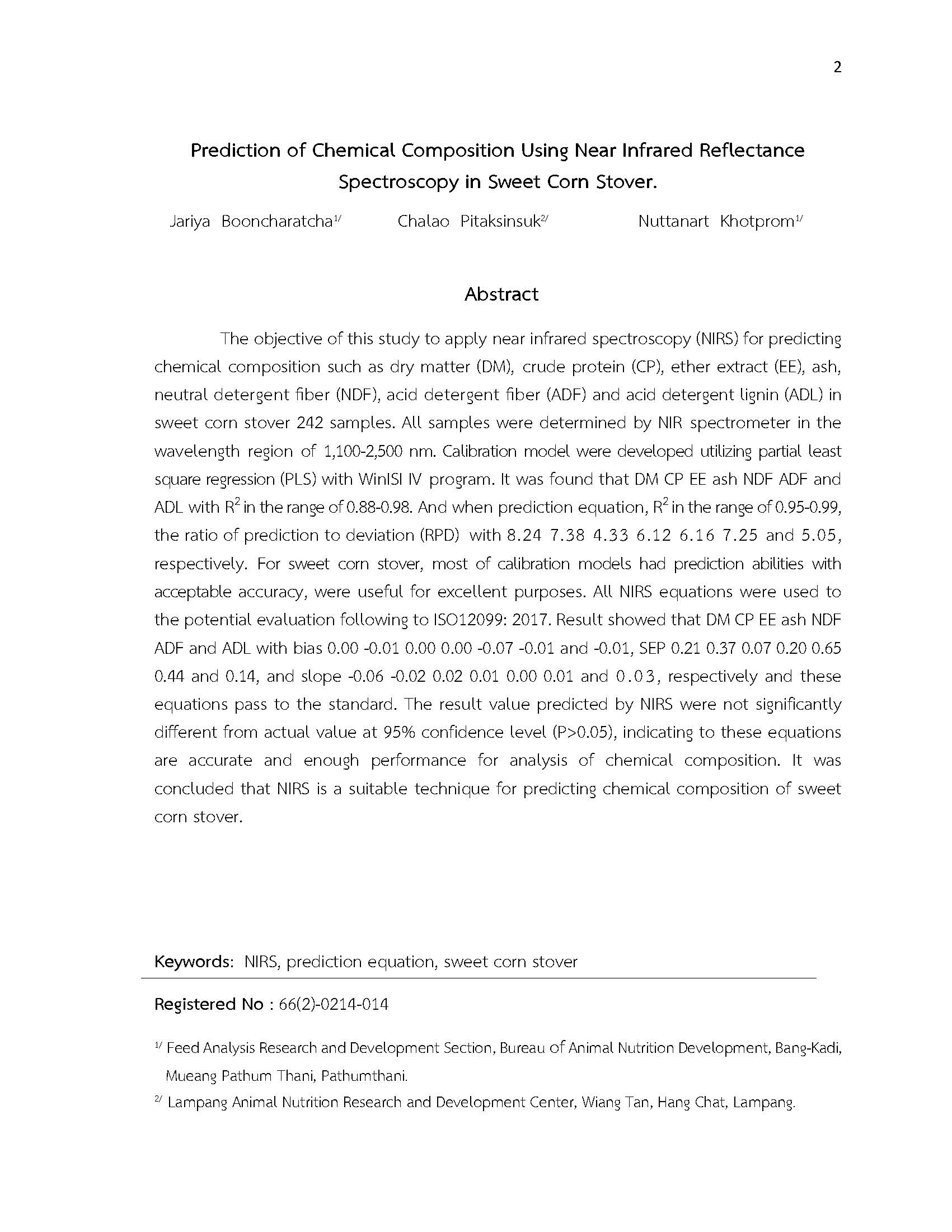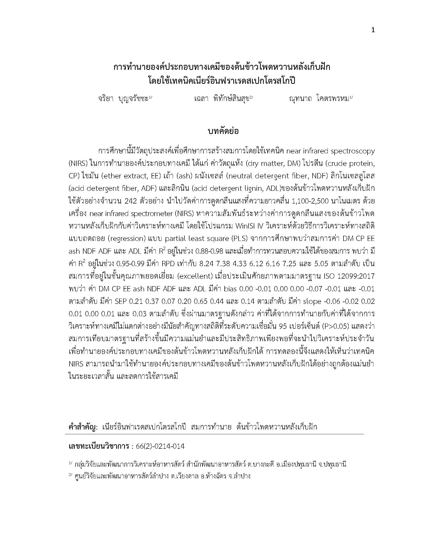 การทำนายองค์ประกอบทางเคมีของต้นข้าวโพดหวานหลังเก็บฝักโดยเนียร์อินฟราเรดสเปกโตรสโกปี
